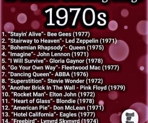 Je suis tombé par hasard sur cette liste de « 15 chansons marquantes de la décennie 70 » et je